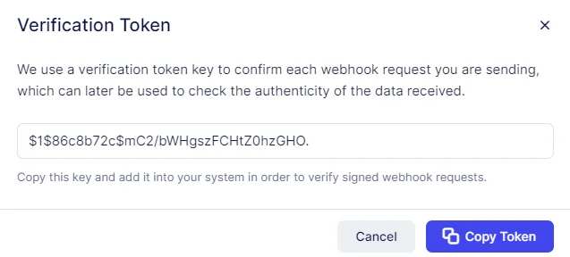 When setting up your Webhooks in Quickly Booked App, you have the option to utilize a ‘Verification Token‘. Clicking on this button (next to the “Create Webhook” button) will prompt a pop-up window where you can view and copy your verification token.
