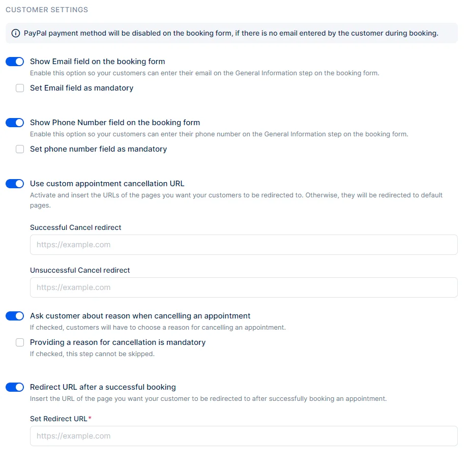 Within the Custom Fields section, you have the ability to configure additional fields for both the Appointment and the Customer. These fields are valuable when you need to gather more specific information about your customers and their bookings.
