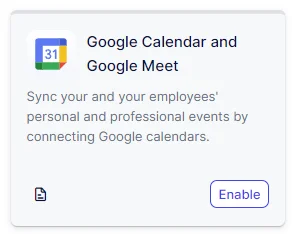 To enable it, navigate to the Features & Integrations section within Quickly Booked App. Locate the “Google Calendar and Google Meet” integration, and activate it with a simple click on the “Enable” button.