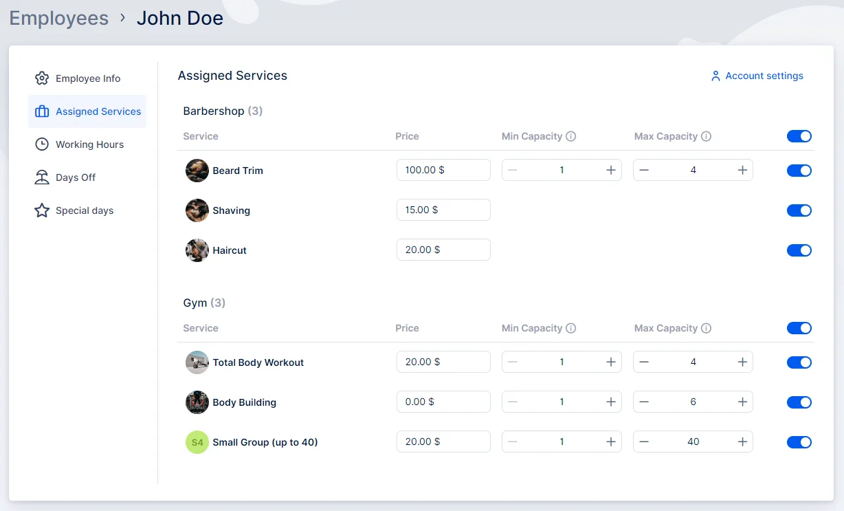 If you have multiple employees providing the same service and you want to set different capacities for each employee, we have you covered. Here’s how: