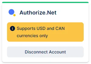 Note: To establish a connection with Authorize.Net, it is essential to configure the currency in Quickly Booked App to either USD or CAN. This is necessary as these two currencies are the only supported currencies across all payment profiles in Authorize.Net.
