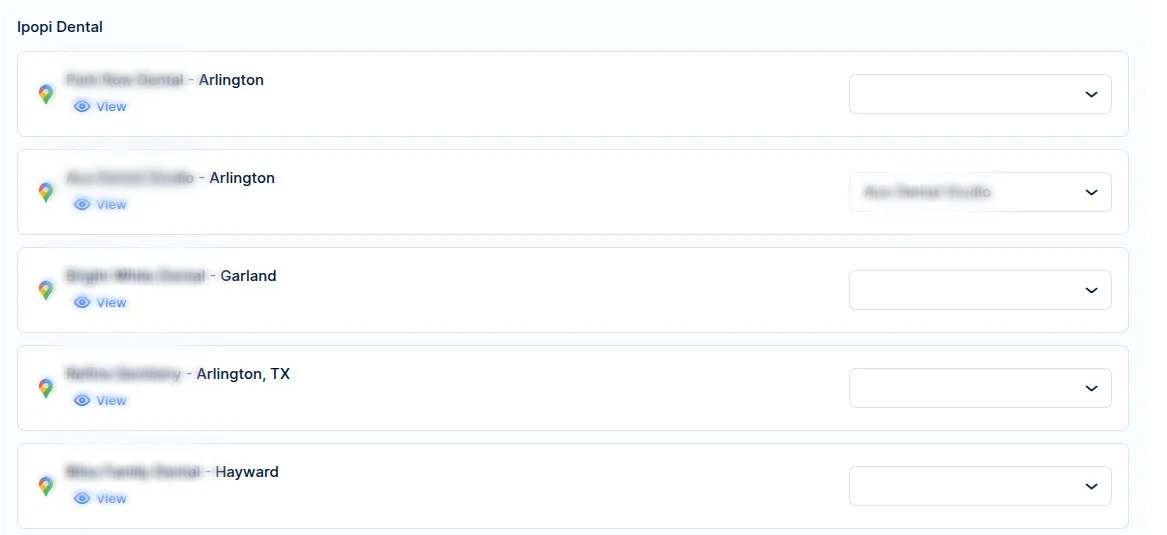 The left side will show Google Business locations, while the right drop-down menu will list all the locations created in Quickly Booked App and they need to be matched.