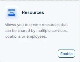 The Resources feature for Quickly Booked Appis considered a premium feature, and it will be counted towards your total number of Custom Features & Integrations. It is only available with the Scaling plan.