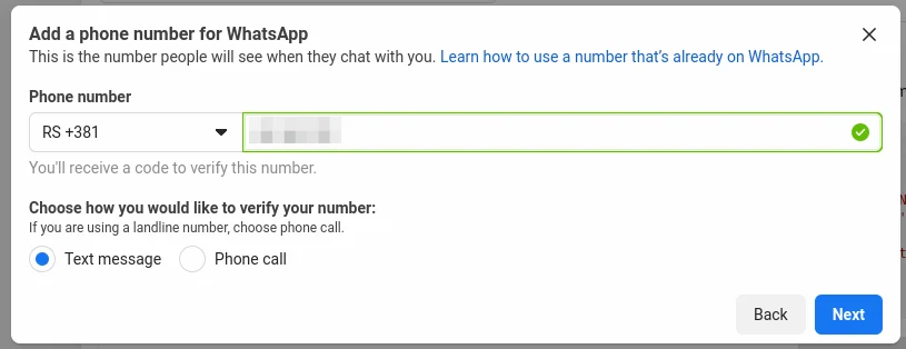 If you enter a number that is already registered with WhatsApp (whether for personal or business use), once linked here, it will no longer be usable on a mobile device. We highly recommend acquiring a new number specifically for this integration to avoid any disruptions to existing WhatsApp usage.